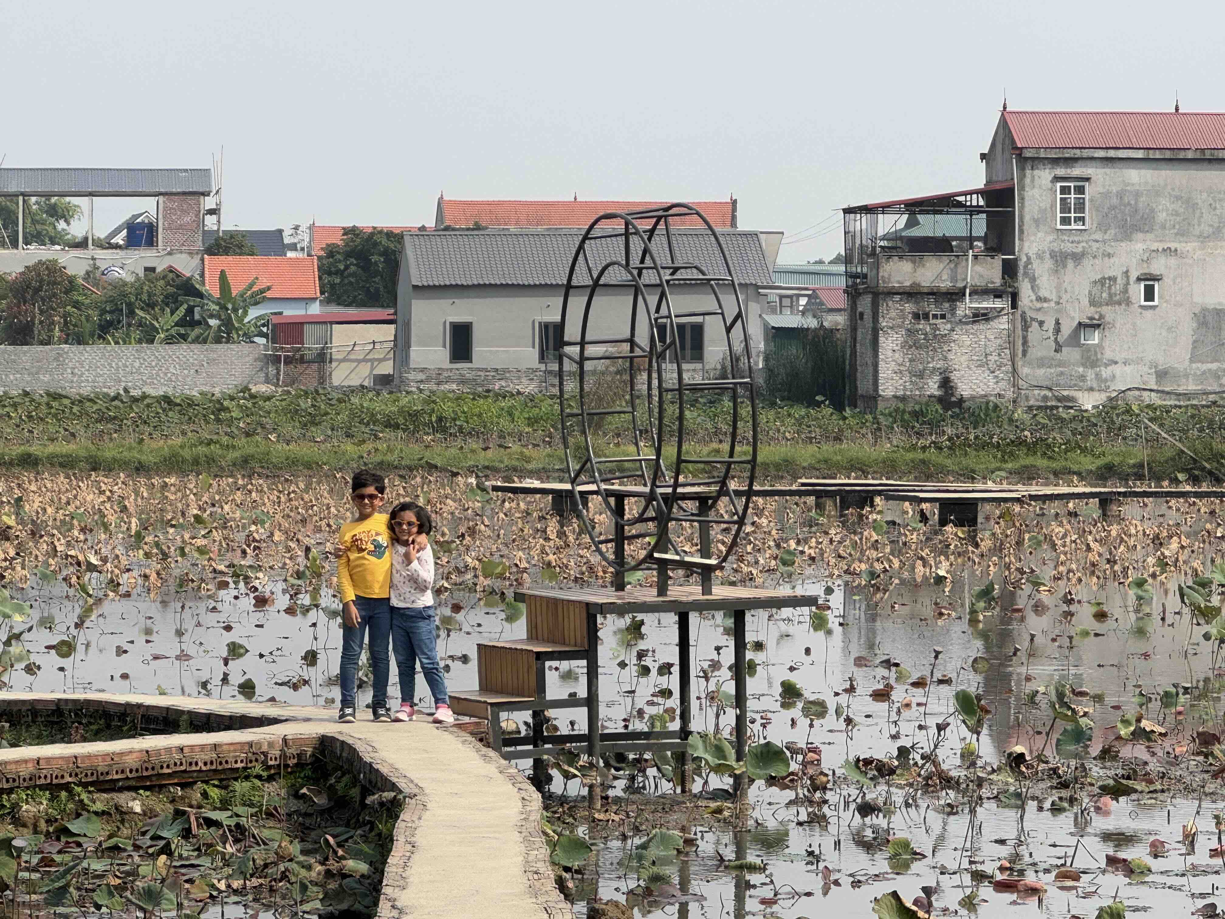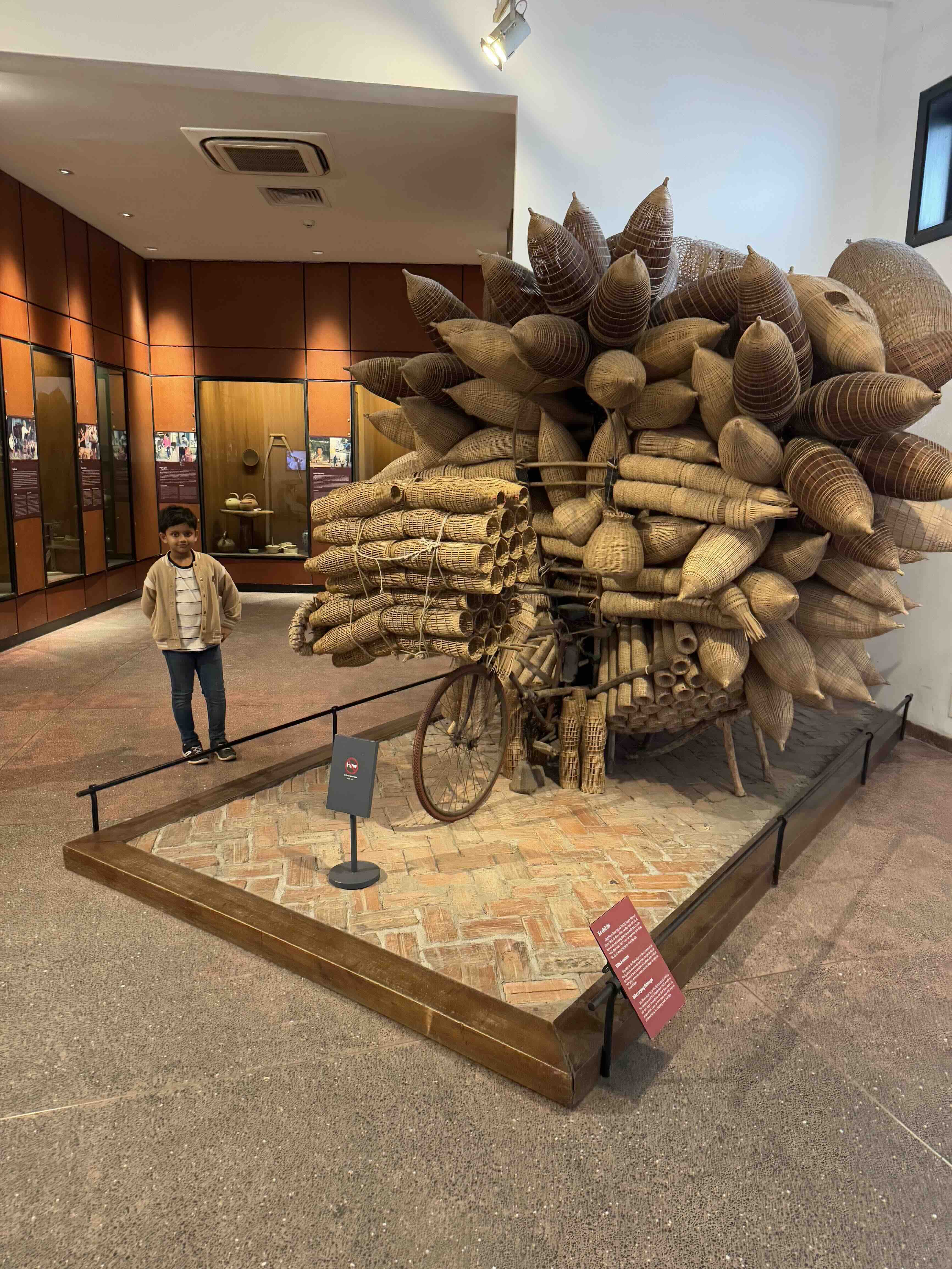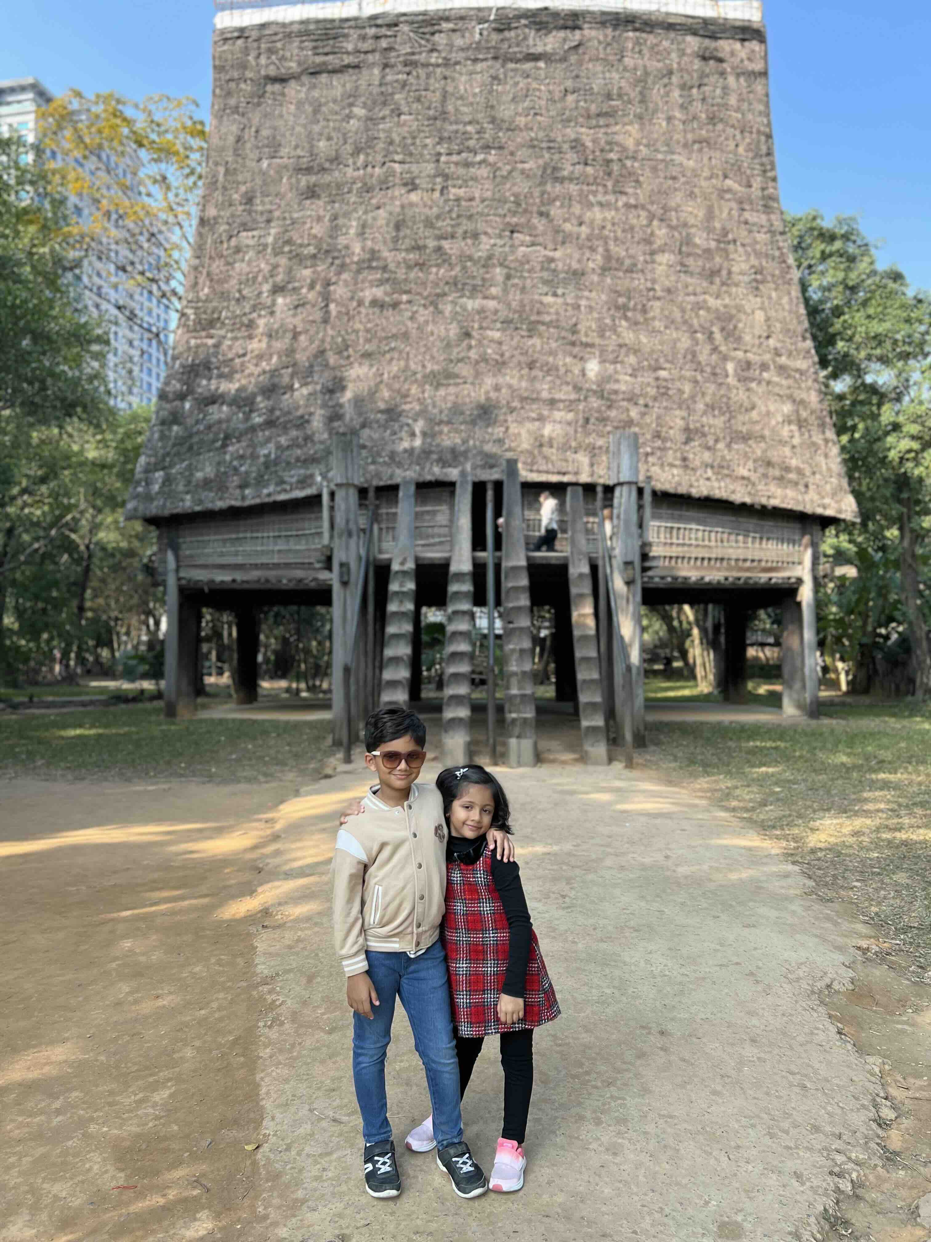 The outdoor area exhibits different kinds of Vietnamese homes on full scale. We saw a long boat said to be used for boat races in Indochina. People believed that the more races won by the boat, the more sacred it was. I observed a very interesting way of harvesting rainwater inside a house. The roof of the house was slanted, which allowed for the rainwater to fall into half a log of wood which would transfer the water into the well.