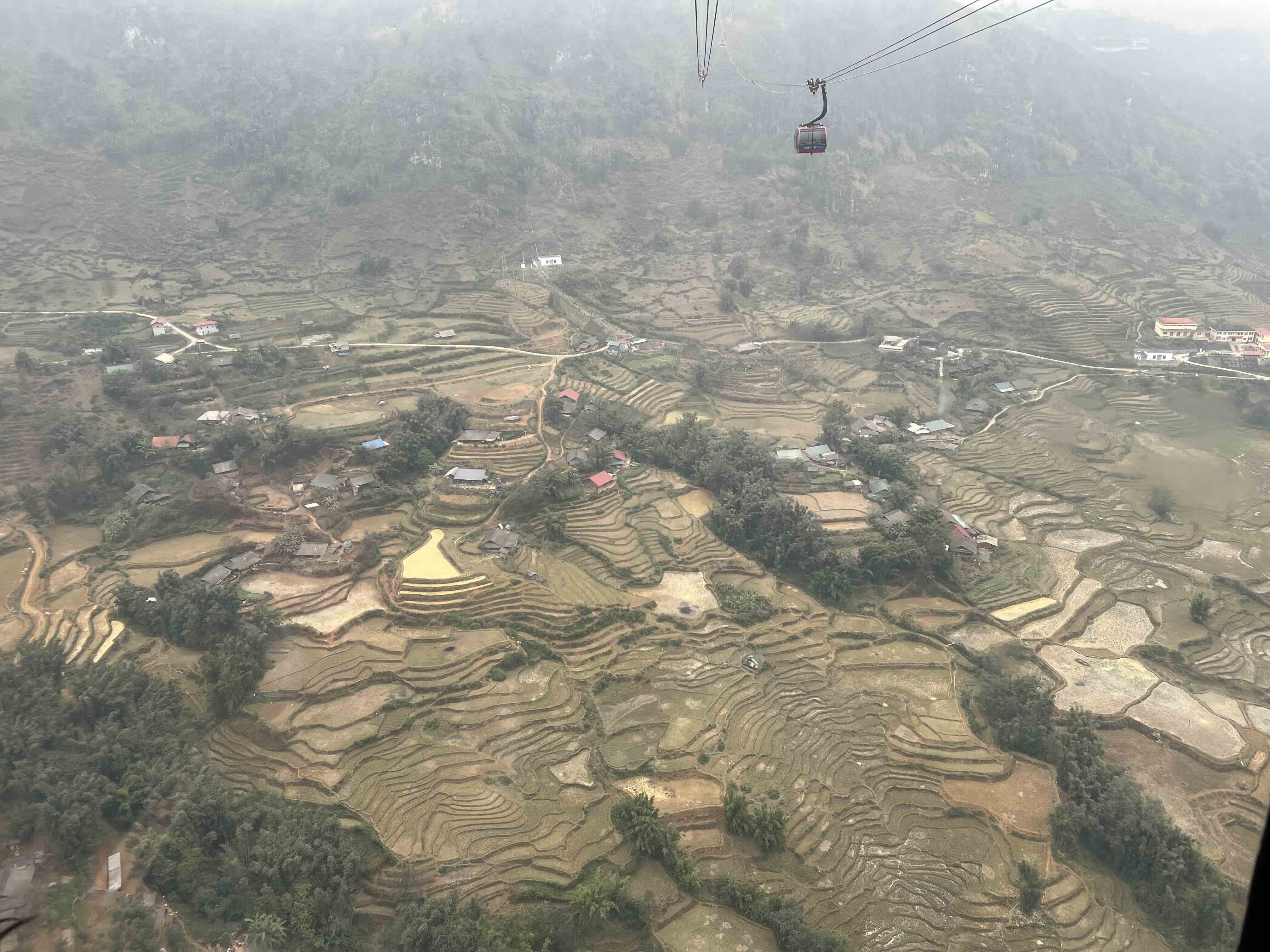 There are three segments of the trip. The first is from Sun Plaza, a funicular station to the cable car station. I could see the train going up and felt my body slanting but I held onto the railing. My dad told me that the train moved because of pulleys and that there were two funicular trains. The view from the train was beautiful. I could see the mountains, paddy fields and maybe even the village of Sapa.