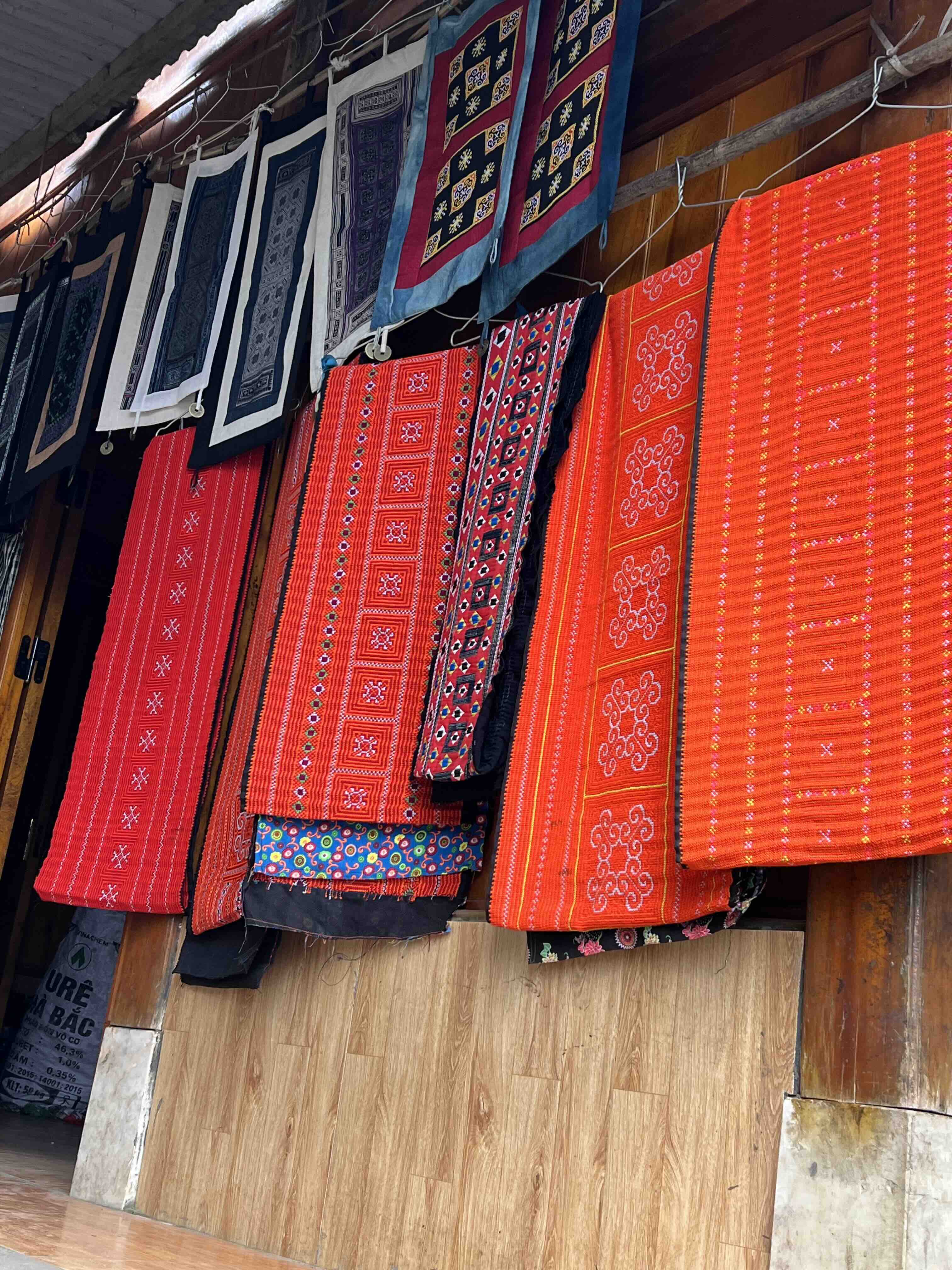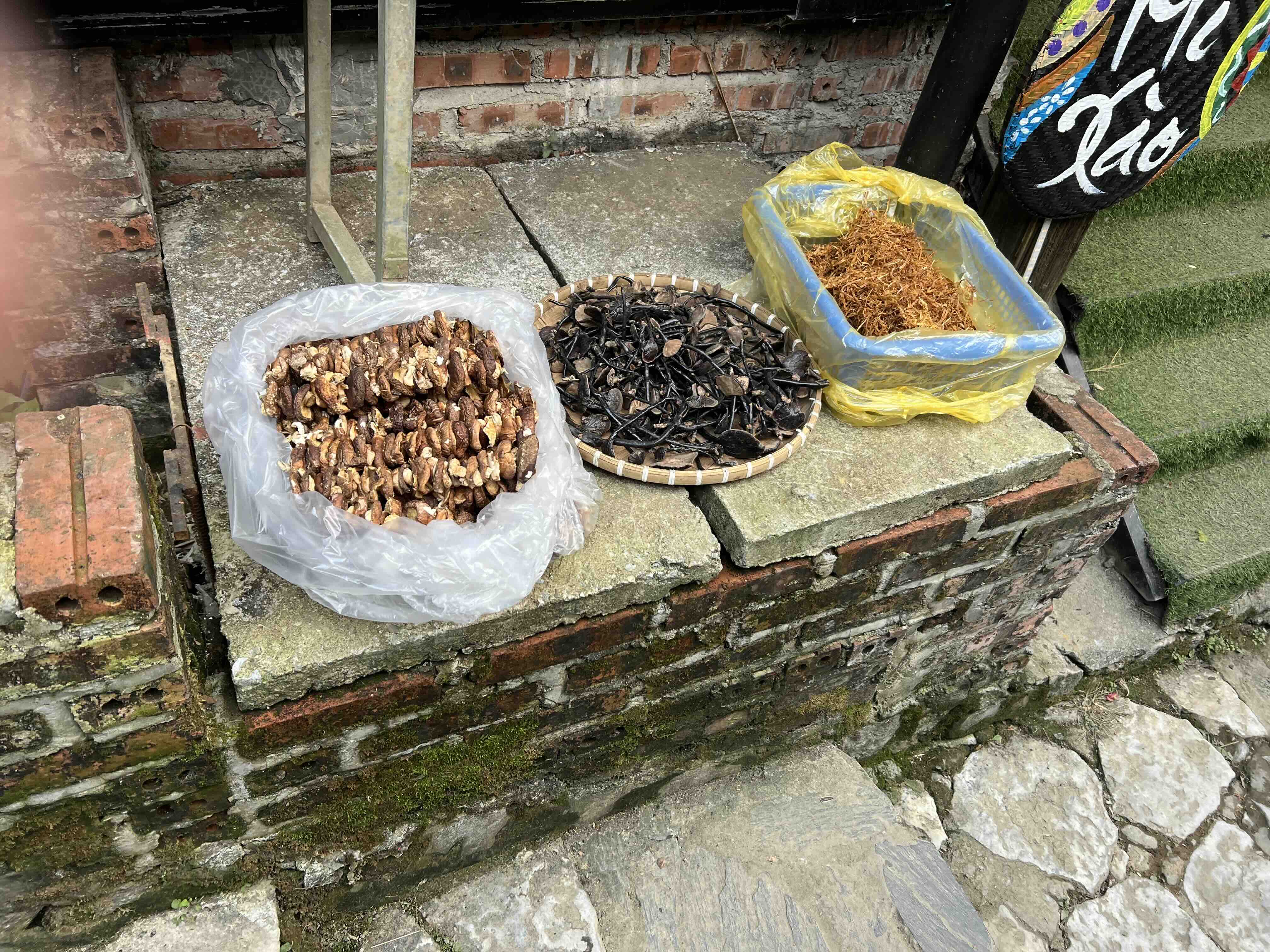 To end the day, we went to Cat Cat village, one of the local villages in Sapa. We saw many H’mong women dressed in colorful embroidered clothes with lots of gold and silver jewelry like necklaces and earrings. There were also many shops selling colorful woven bags and clothes as well as dried foods like buffalo meat and different kinds of herbs and roots. Sausages were being smoked over hot coals, drying from the hot air.