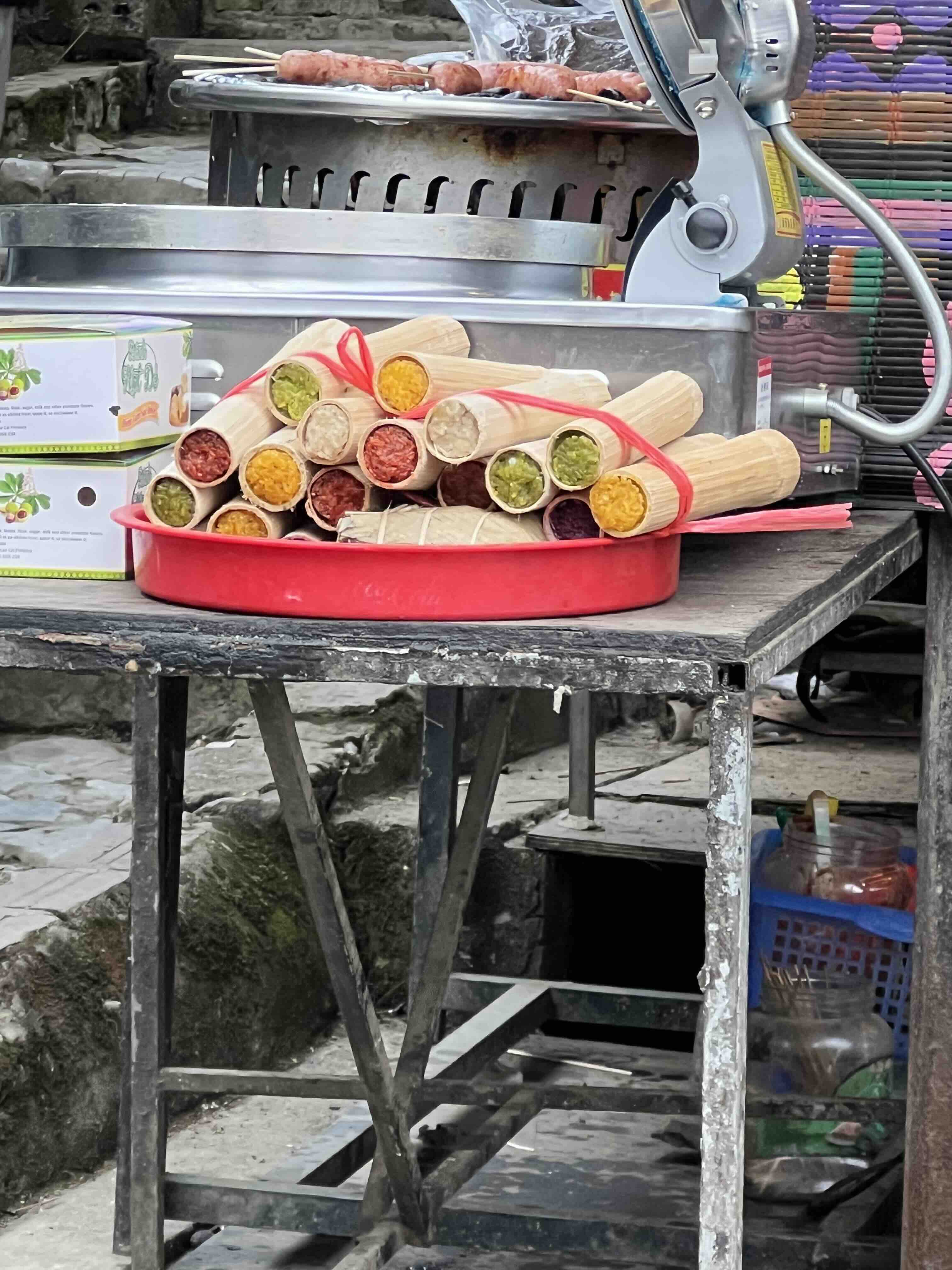 For lunch we went to a restaurant that served the local cuisine of Sapa. We had purple coloured rice, fried and then wrapped in a bamboo stem along with pork, smoked also, in a bamboo stem. I really liked the juiciness and tenderness of the pork. Outside, I saw a whole tank of sturgeon and trout which is used to make local dishes in Sapa