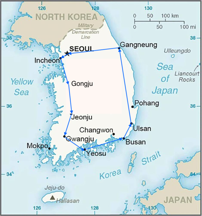 Our itinerary would take us in a circle all around Korea. We would visit Gonju, the city which was where the Baekjie kingdom thrived, Jeonju, the place where a famous dish called Bibinbap was invented, Busan, the second largest city in Korea, Gangneung, the city of pine forests and Seoul the capital of Korea.