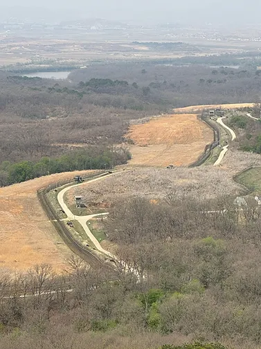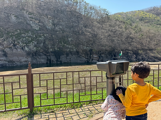 We soon were back on the bus going to the Dora observatory. At the observatory, we could see a river which was the border. There was a North and South Korean flag facing each other at the border. There was a huge area of forest supposedly where the DMZ was. Next, we went to a tunnel that the North Koreans had dug to try to invade Seoul. It was very steep down the artificial tunnel to get to the real tunnel. In the real tunnel, my dad had to keep on ducking so that he did not hit his head. We could see yellow marks that were surrounding holes that dynamite was placed in when people were building the tunnel. If we could go through the whole tunnel, we would end up in North Korea. To stop North Koreans from passing through the tunnel, people added 3 strong doors. The climb back up was steep and we walked slowly to the top. After that, went back to the bus stop, and from then back to Seoul.