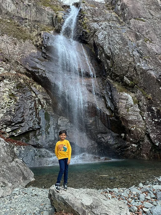 Then we picked a trail to climb and set off to our target, Yukdong falls. We climbed all the way to a suspension bridge overlooking the falls. There was water suddenly jetting out of the rock, but how could this happen? It was because the force of the water had made a hole in the rock. The hole was quickly filled resulting in water spraying out. While coming down we stopped near a big patch of snow, and had great fun trying to make a snowman! After coming down we went home and played video games for almost an hour before going to sleep!