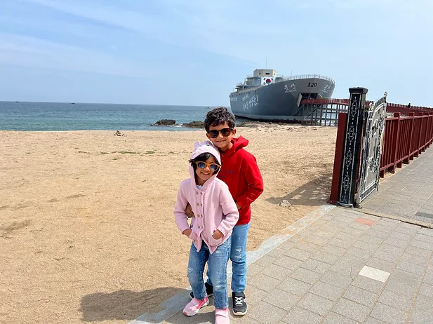 After that, we drove to a warship called the Munsa, that had been used in the Korean war. It had been hollowed to make a museum. It landed in the Jangsa port after its mission. When North Korea attacked South Korea, they had to withdraw and escape to the small part of South Korea that was left: Busan. To reclaim land, the South Koreans sent the Munsan as a distraction to lure the North Korean soldiers away from Seoul and then sent their army to capture Seoul back.