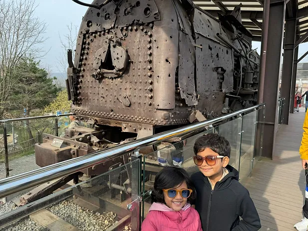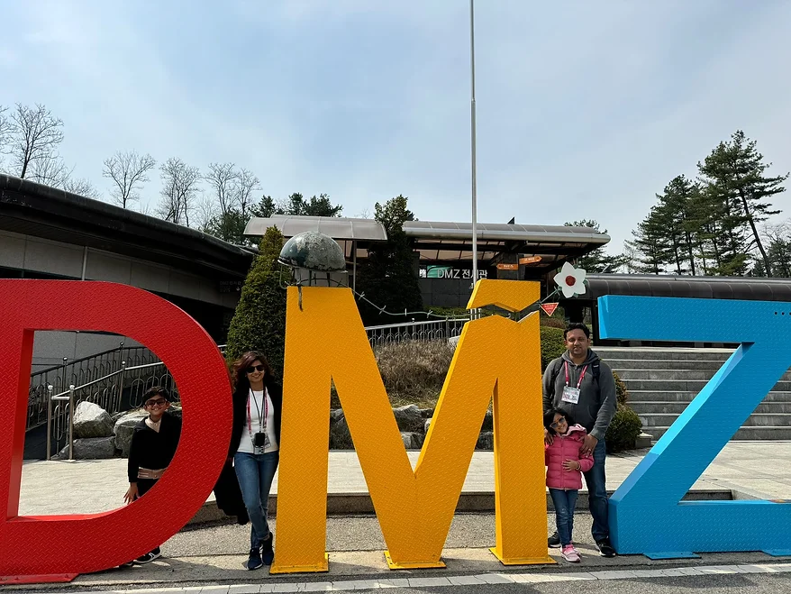 There were 2 bridges, the Dokgae Bridge which was destroyed after war and the Freedom Bridge which was used by the Prisoners of War as they walked back to their respective countries. We saw a train that had been destroyed by bullets, which had carried prisoners on the Freedom Bridge. We took a glass-bottomed cable car to the Civilian control zone which was just in front of the DMZ. We could see warnings that there were mines around. There was also a gallery about the war that showed the lives of different soldiers that fought in the war.