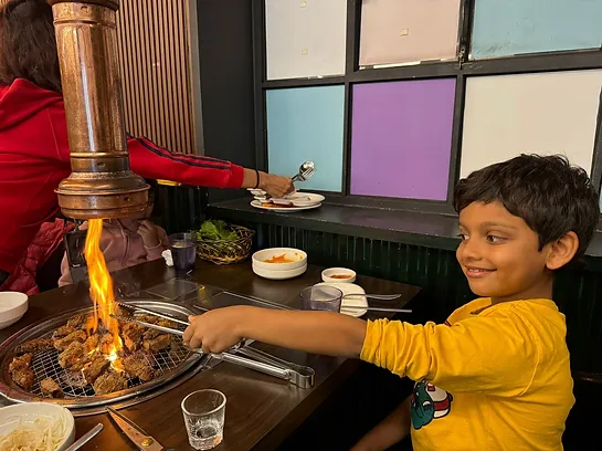 Soon, it was night and we headed for dinner. We went to a Korean barbecue restaurant. I had a lettuce roll with barbecue beef and Gochujang sauce, a spicy sauce. The beef was very tender and juicy with crunchy lettuce. My parents let me have a whole tub of Gochujang sauce for myself.