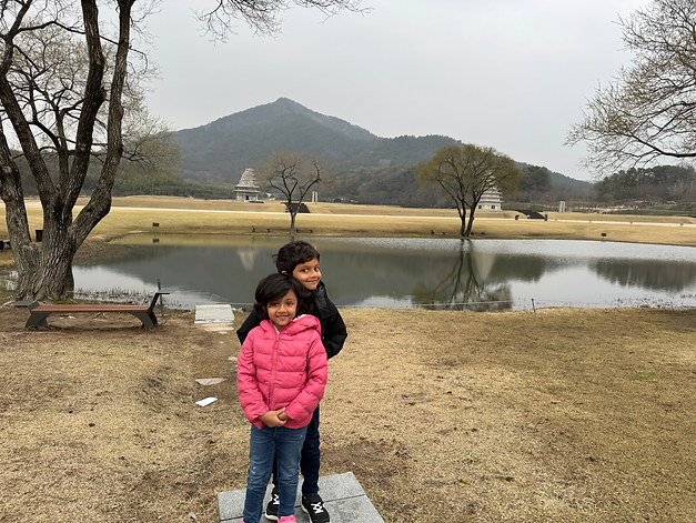 We landed in Korea on a lovely morning in April, and when I stepped out into the open air, I felt a sudden wind chill. We had an hour to our first destination, Gonju. While sitting in the car, my mom told us about Korean history. The earliest dynasty was the Gojoseon dynasty which means “ancient Joseon”. The Gojoseon territory was then split into 3 kingdoms. One of them was Silla which grew until these kingdoms were unified into the Goryeo dynasty that has a similar name as mine. After that, there was the Joseon dynasty that has a similar name to my dad! You know, Korea would have been called Gorea and then, I would have a country with a name like mine!